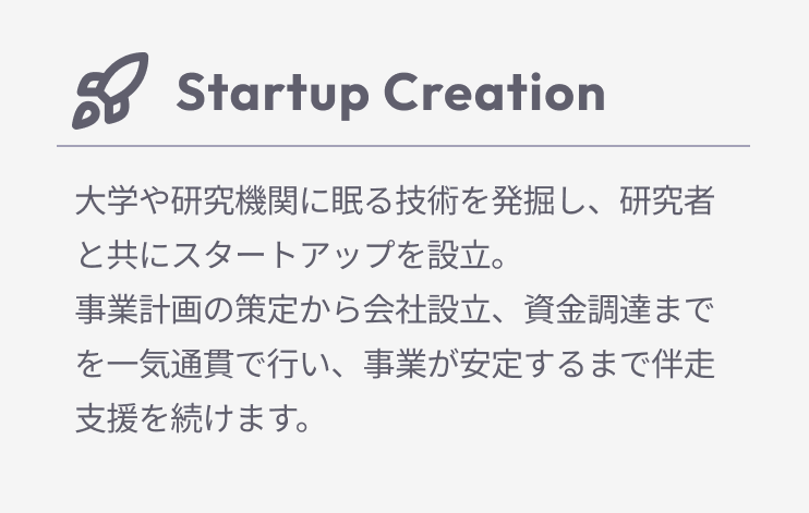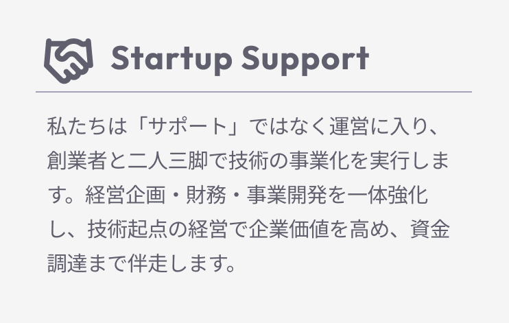 2024年10月よりフリーランスとして独立。研究シーズの事業化・社会還元に関わることを軸とし、スタートアップの経営企画・管理業務支援や研究所の外部連携制度構築支援など、研究開発型組織のコーポレート業務を手がける。